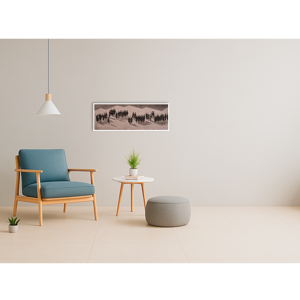 Las obras que les comparto no están dispuestas cronológicamente sino conectadas por el hilo de mis intereses: es la materialidad del carbón, con sus trazos, manchas, puntos y borrones, la que da lugar a espacios y personajes que surgen al unísono del recuerdo y del movimiento de la mano. Presento ciudades abducidas y circunstanciales donde la gente se mueve como una aparición. Pienso en la caída de la lluvia intensa e intermitente de Bogotá y en la caída de la luz, que perros callejeros quisieran atrapar. En estos escenarios, distópicos o idílicos, se integran fachadas, horizontes y personajes anónimos que, como manchas, se forman, se transforman o desaparecen.