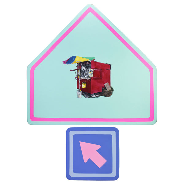 Obra en la vía un proyecto pictórico en el que retomamos el concepto de señal de tránsito,apropiamos alguno de sus elementos formales y resignificamos su contenido.Para esto realizamos diversos recorridos por la ciudad registrando escenas y personajes urbanos y rurales que consideramos forman parte de la identidad y la memoria colectiva de los espacios de la calle. Este proyecto es una analogía entre la señalización vial y algunas imágenes de la cultura popular colombiana.