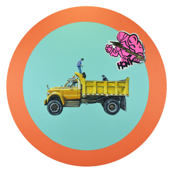 Obra en la vía un proyecto pictórico en el que retomamos el concepto de señal de tránsito,apropiamos alguno de sus elementos formales y resignificamos su contenido.Para esto realizamos diversos recorridos por la ciudad registrando escenas y personajes urbanos y rurales que consideramos forman parte de la identidad y la memoria colectiva de los espacios de la calle. Este proyecto es una analogía entre la señalización vial y algunas imágenes de la cultura popular colombiana.